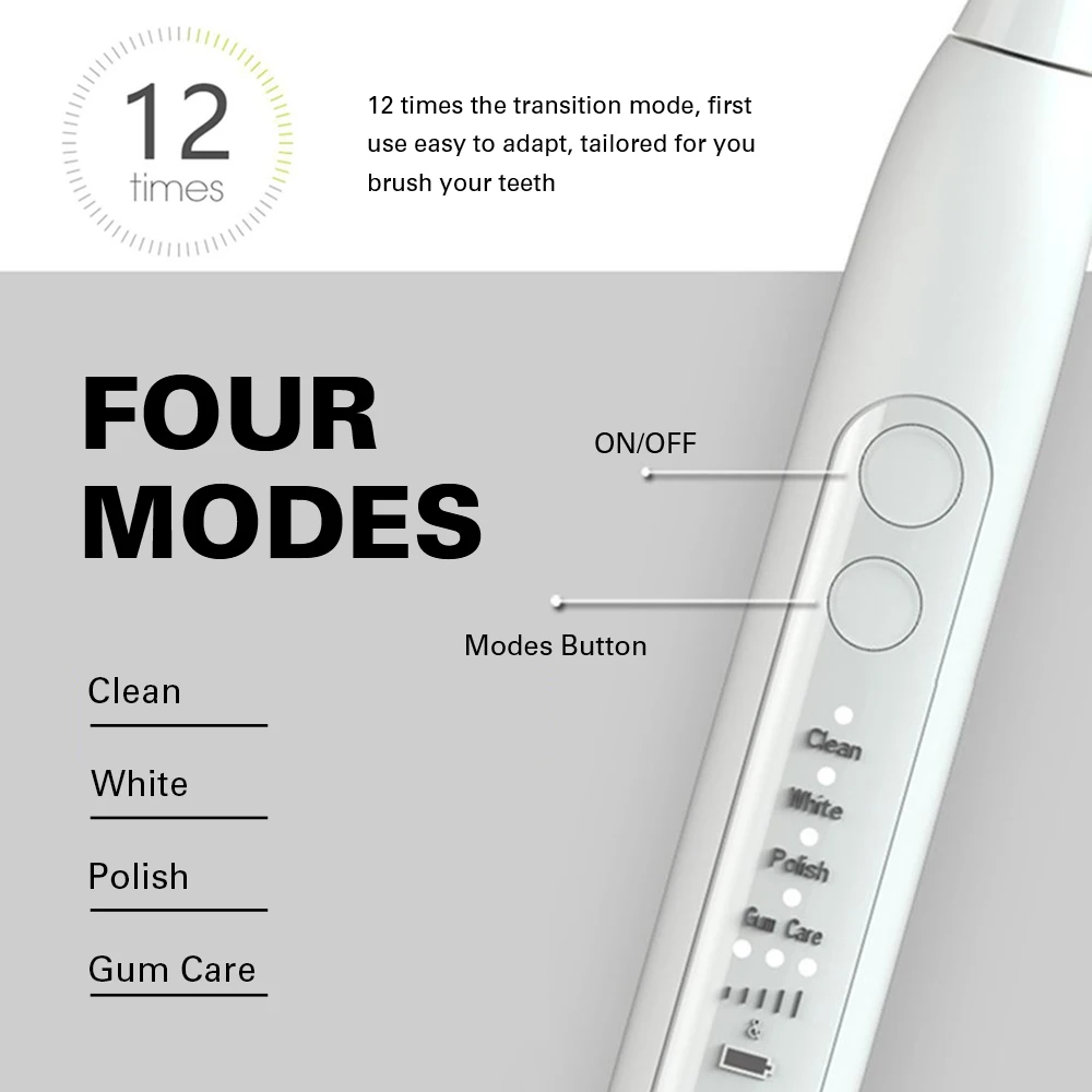 2,12 режимы перехода: 12 режимов перехода, легко адаптироваться в первый раз, индивидуальный опыт чистки для вас.