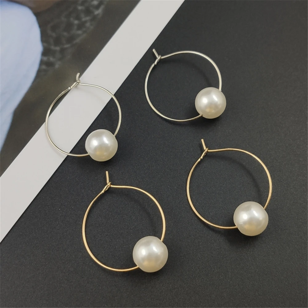 Щепка Цвет Элегантный Имитация жемчуга Серьги в виде колец, Для женщин Круг Форма Вечерние ювелирные изделия Свадебные украшения Серьги Золото Цвет