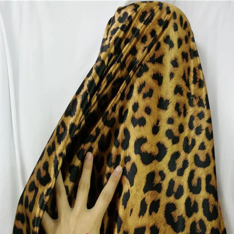 Изделие:Высокоэластичная Атласная блестящая танцевальная ткань кофейного цвета, ткань с леопардовым принтом, 4-сторонняя эластичная танцевальная ткань с принтом Красного огня