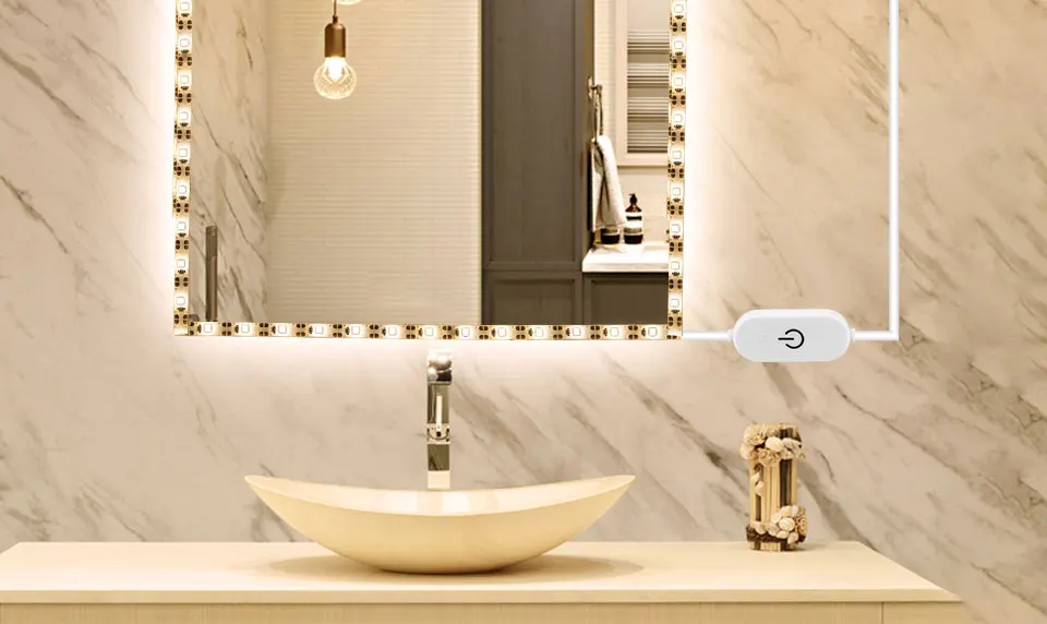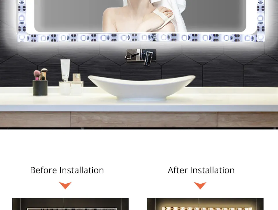 Особенности: Название: светодиодная зеркальная Лента USB Длина: 0,5 м/1 м/1,5 м/2 м/3 м Напряжение: DC5V Тип ламп: SMD 2835 Количество светодиодов: 60 светодиодов/м Цветовая температура: белый/теплый белый Уровень водонепроницаемости: IP33 водонепроницаемый/IP65 водонепроницаемый Применение: 1. Задняя сторона светодиодной ленты-клейкая лента. Вы можете вставить его в зеркальную раму в качестве подсветки. Для девушки комнаты, это хороший продукт для освещения и украшения. 2. Также вы можете прикрепить к телевизору или ноутбуку для украшения 3. Кроме того, используется для освещения под шкафом, также хороший выбор.