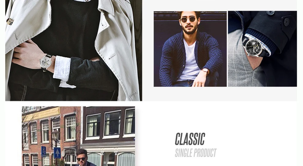 Мужские механические наручные часы WINNER Noble с кожаным ремешком большие скелетоны