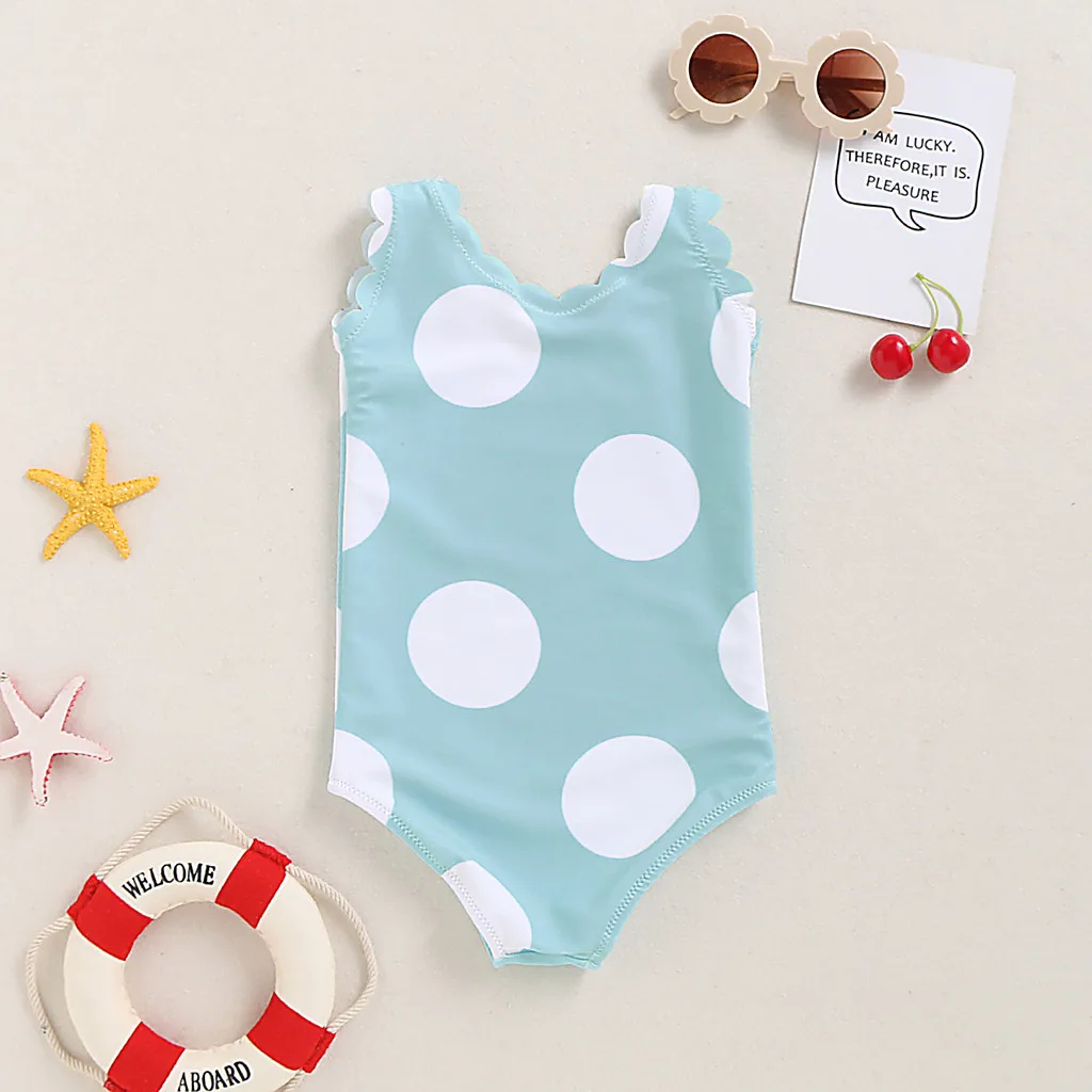 Новинка; Купальник в горошек с оборками; Купальник; Купальный костюм; Цельный купальник для девочек