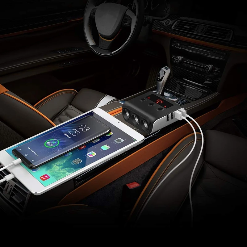 [3 Cigarette Lighter Sockets] Each cigarette lighter socket can provide a maximum 100W power (total power of 3 outlets can not exceed 100W), enough for simultaneous use of a variety of devices such as cameras, GPS, heated seats, vacuum cleaners and other small appliances in your 12V / 24V vehicles.
