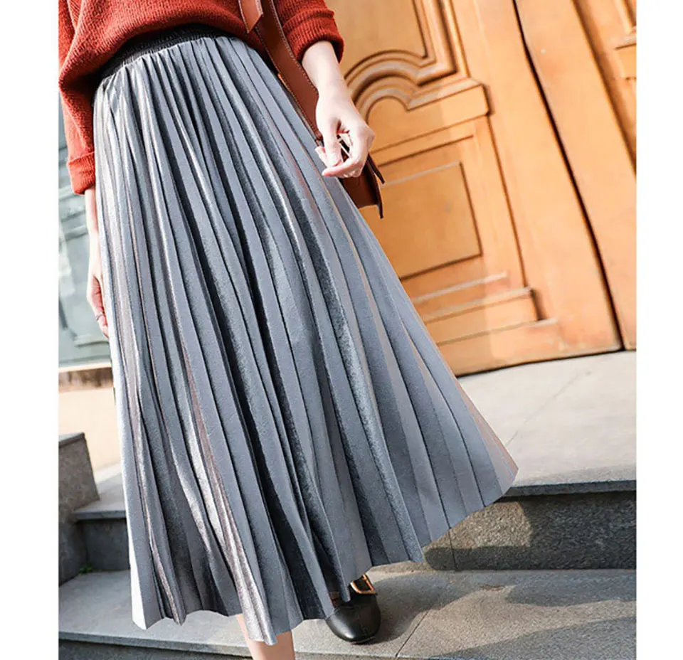 Название: Женская длинная Плиссированная юбка миди с металлическим и серебристым эффектом; Повседневная юбка с высокой талией для вечеринок Особенности товара Материал: полиэстер Размер: S,M,L,XL,2XL,3XL Характеристика: Однотонная Плиссированная, с высокой талией, удобный и стильный дизайн, очаровательная, стильная и элегантная, сохраняя свою форму в течение всего дня.