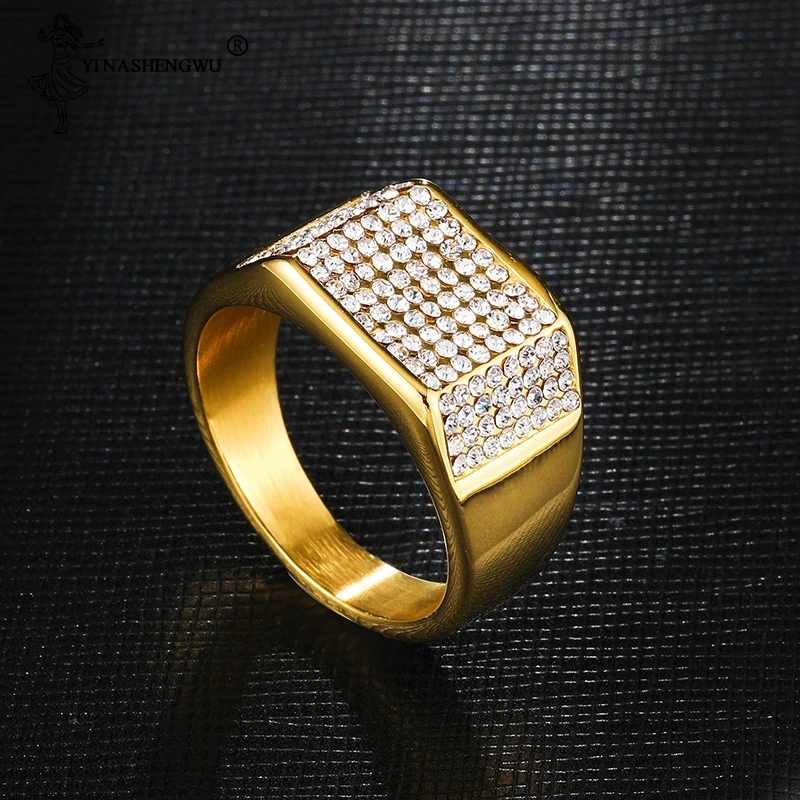 Кольцо из нержавеющей стали в стиле хип-хоп со льдом золотистого цвета с микро-покрытием из страз, кольца с кленовым листком для Мужчин, Ювелирные Изделия Bague Homme