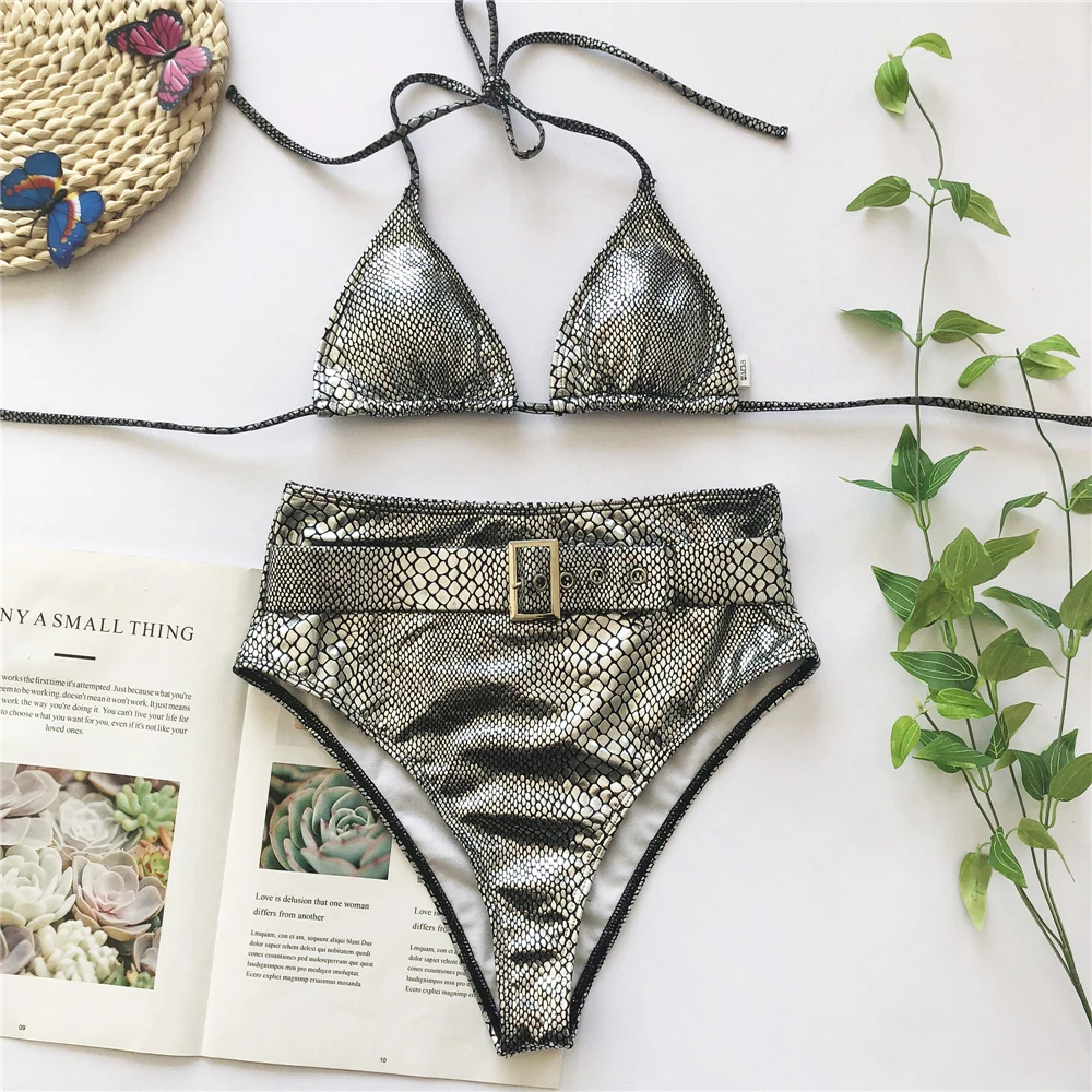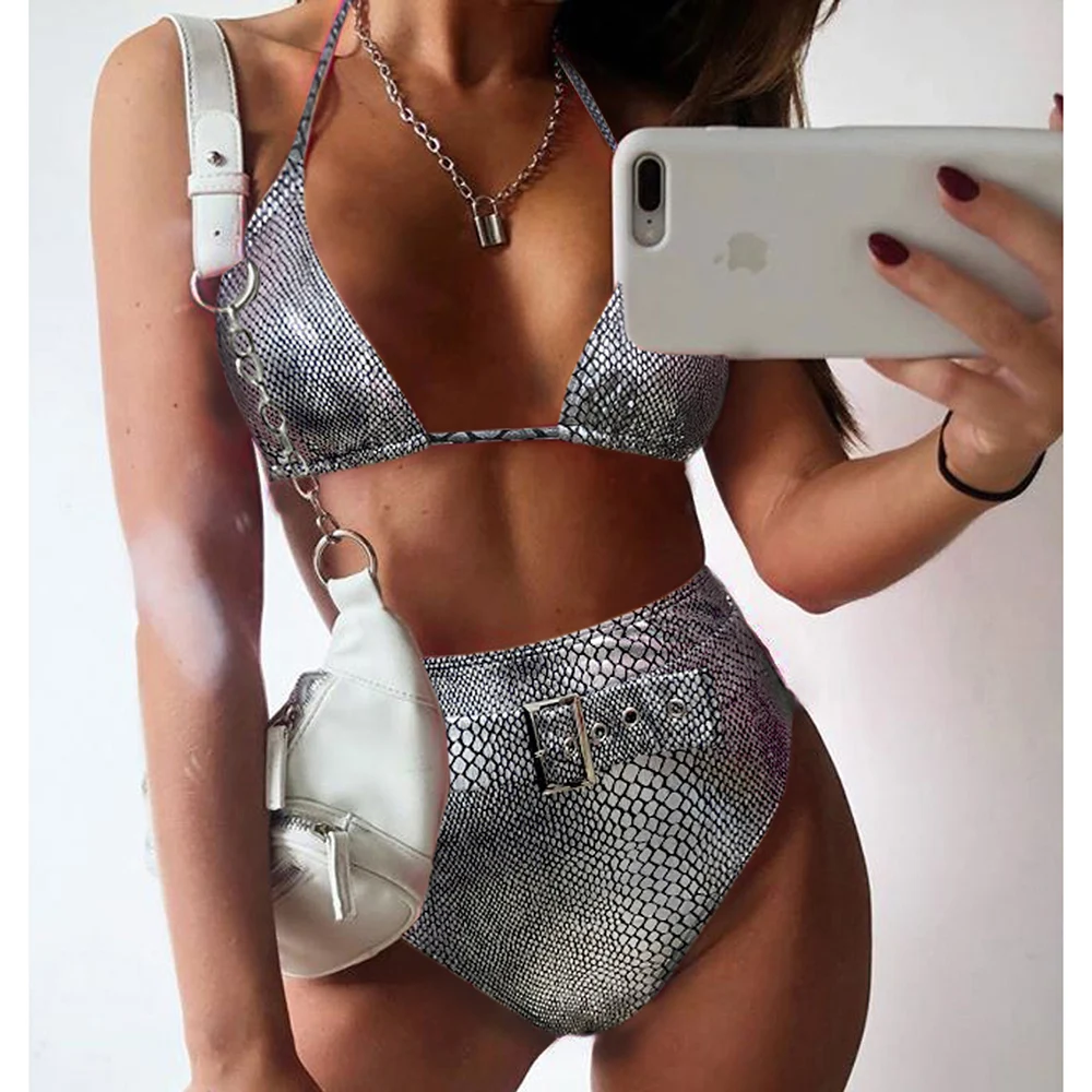 Микро Бикини 2020 Бандаж с высокой талией купальный костюм женский летний сексуальный бикини пляжная одежда с лямкой через шею купальник женский