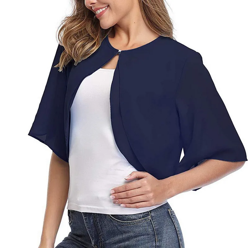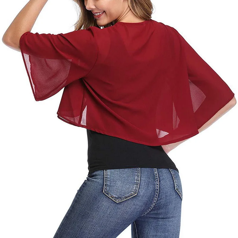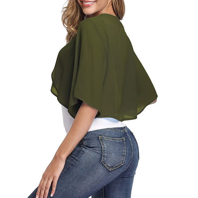 Женский короткий рукав прозрачный Укороченный кардиган шифоновый жакет болеро
