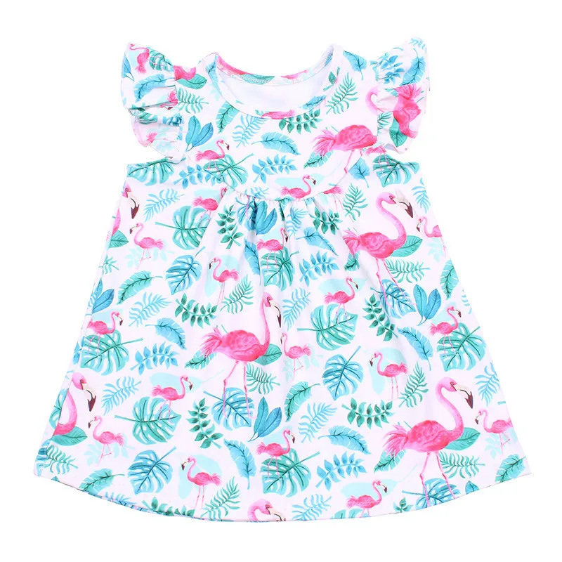 Детская одежда; Детские топы; Рубашка с принтом страуса; Рубашка для девочек с цветочным принтом; Изысканная летняя рубашка принцессы из молочного шелка для маленьких девочек