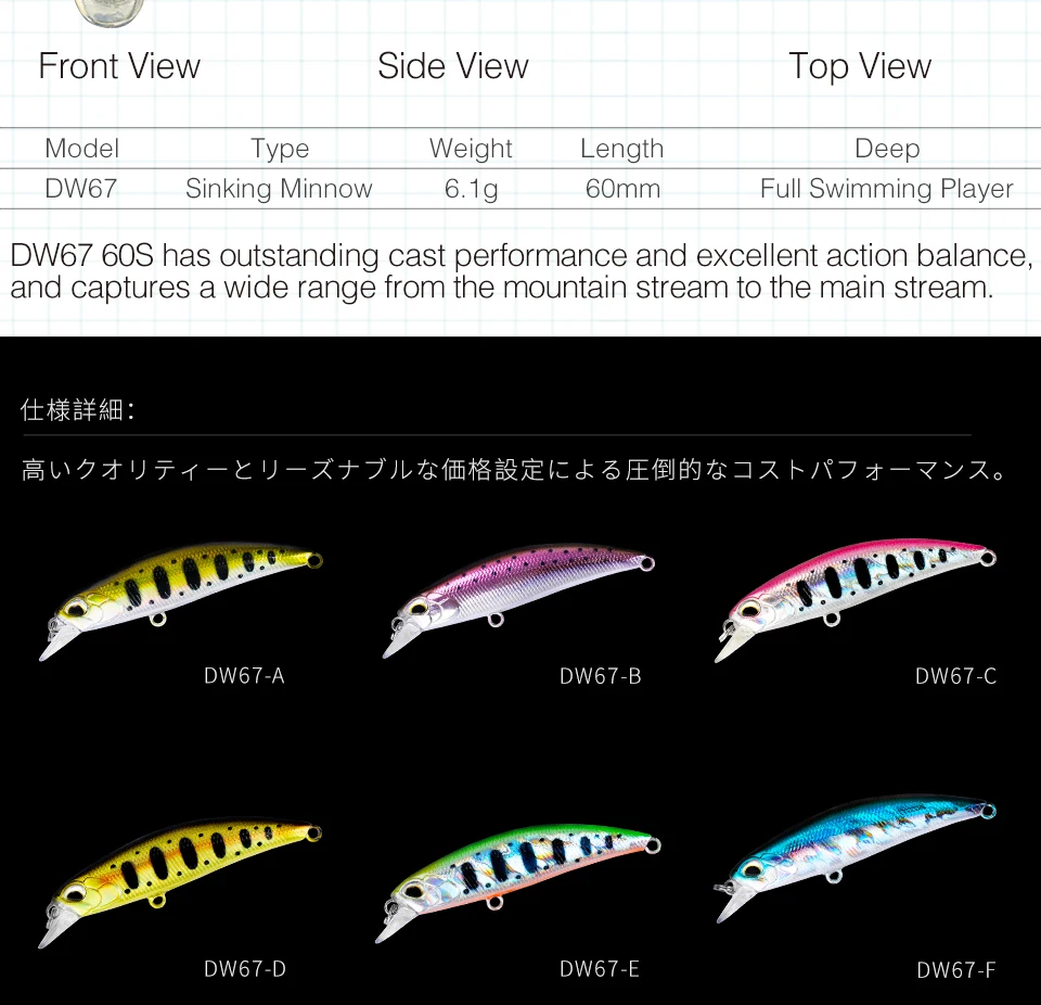 DW67 60S обладает отличной производительностью и превосходным балансом действий и захватывает широкий диапазон от горного потока до главного потока.