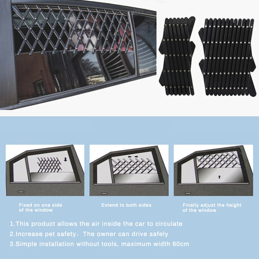 Расширяемая конструкция позволяет окнам открываться шире для лучшего потока воздуха. Дайте свежему воздуху, сохраняя домашних животных в безопасности в машине.