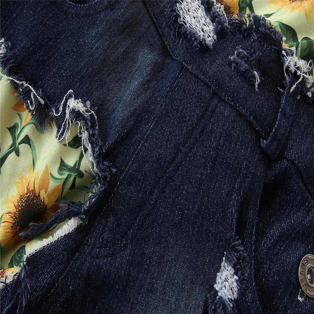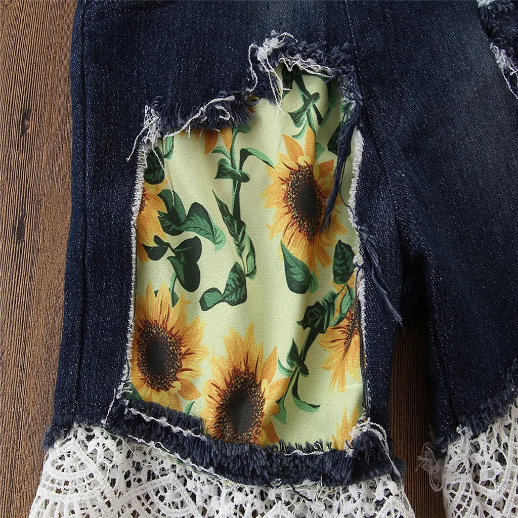 Джинсовые шорты на подтяжках с подсолнухами для маленьких девочек, джинсовый кружевной комбинезон, одежда