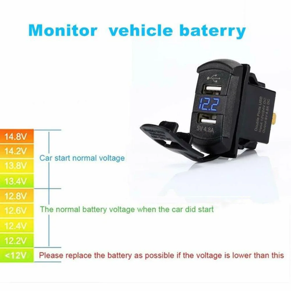 * Светодиодный дисплей напряжения: встроен в цифровой СВЕТОДИОДНЫЙ монитор напряжения, рассеивает точное напряжение в режиме реального времени аккумулятора вашего автомобиля для предотвращения проблем, вызванных низким напряжением, свет также позволяет быстро и легко найти usb-порты в темноте или ночью