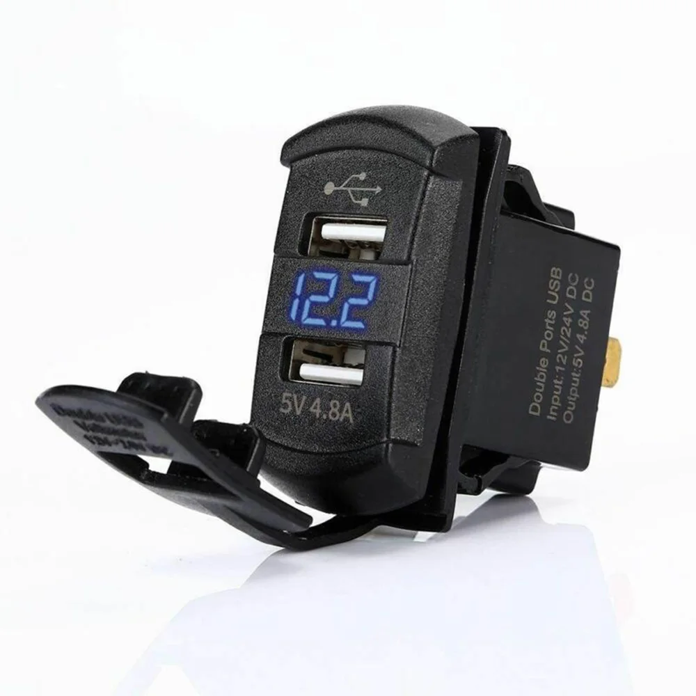 * Супер-быстрое зарядное устройство USB: Быстрая Двойная зарядка USB 4,8 А: Он имеет 12-24 входов постоянного тока, и гнездо питания каждого порта 2,4 А (всего 4,8 а) для быстрой зарядки