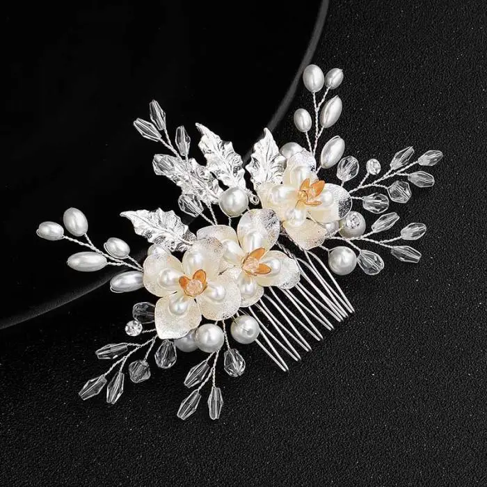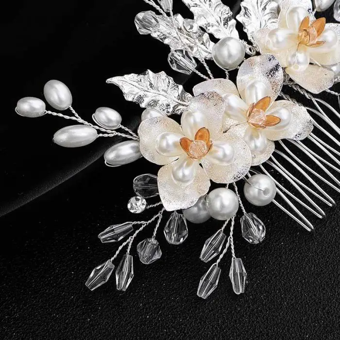 2. Этот тип гребня украшен блестящими кристаллами и искусственным Жемчуг, который является элегантным и красивым для вас.
