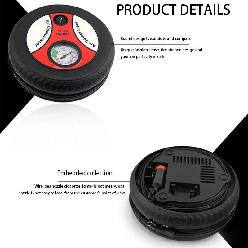 Рабочее давление автомобильного воздушного насоса составляет 260PSI, который надувает обычные автомобильные шины около 5 минут (>30PSI).