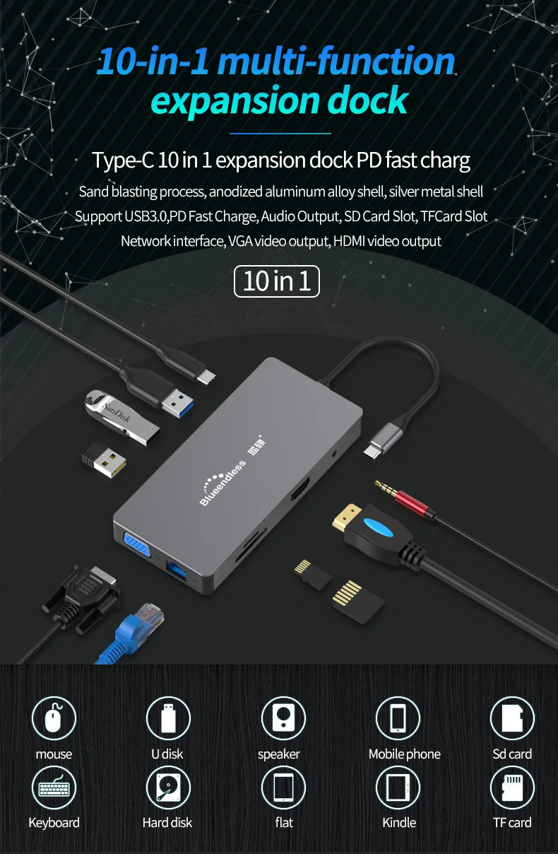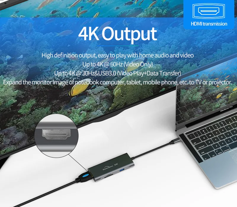 Характеристики: USB3.0 * 3 + TF + SD + HDMI + PD + LAN + аудио отверстие