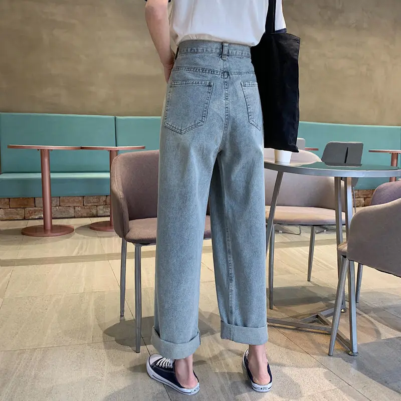 Женские джинсы с высокой талией и принтом свободные брюки широкими штанинами