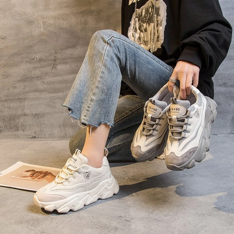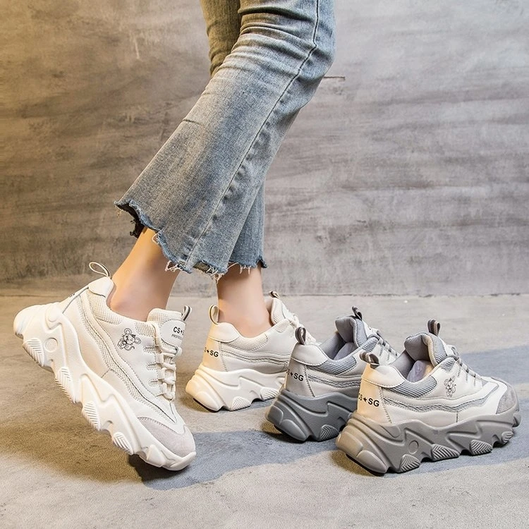 Женские кроссовки на толстой подошве повседневные платформе со шнуровкой в