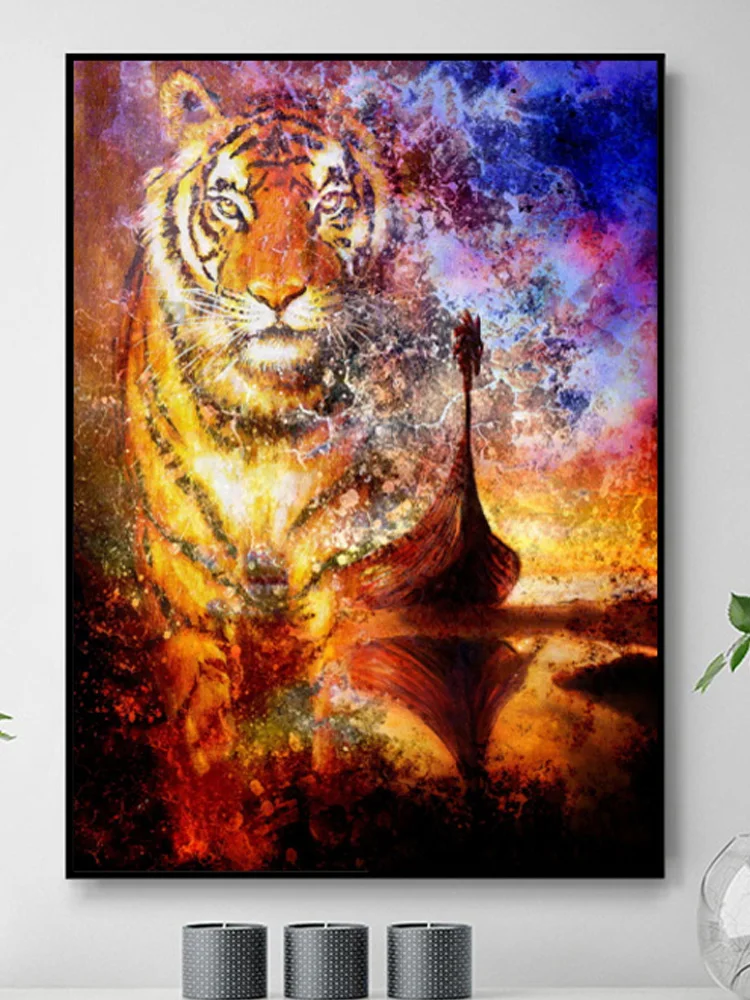 Тигровая лодка Алмазная вышивка полная квадратная Смола Алмазная картина вышивка крестиком 5 d Алмазная мозаика Полный Круглый животный пейзаж,