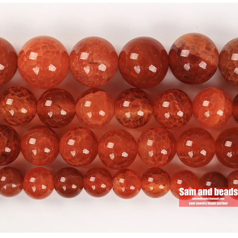 A grade Natural Stone Cracked Red Carnelian Agates Round loose Beads 15" Strand 6 8 10 12MM Pick Size For Jewelry Making CRC20