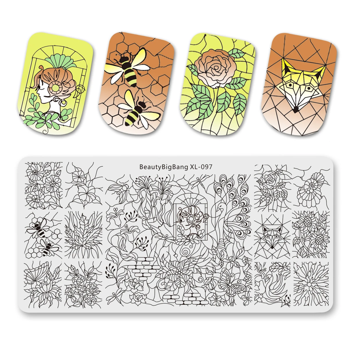 BeautyBigbang XL-097 с цветочным принтом и в полоску, кружевное пластины для стемпинга ногтей, с принтом лисицы и изображение Nail Art Трафарет штамп пресс-форм