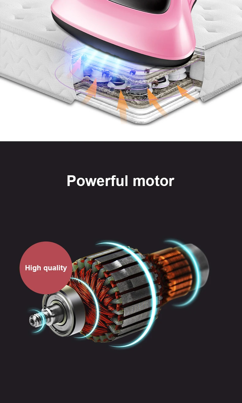 Ультрафиолетовый стерилизатор бытовой лист для удаления клещей пылесос В этой машине используется большой двигатель с большим всасыванием Машина использует 4 метра провода, что достаточно для использования в помещении. Конструкция нижнего ролика эффективно поглощает мусор и более удобна в использовании. HEPA фильтр, фильтр диаметра 0,3 мм, может отфильтровать пылевых клещей и аллергенов, снимается и стирается