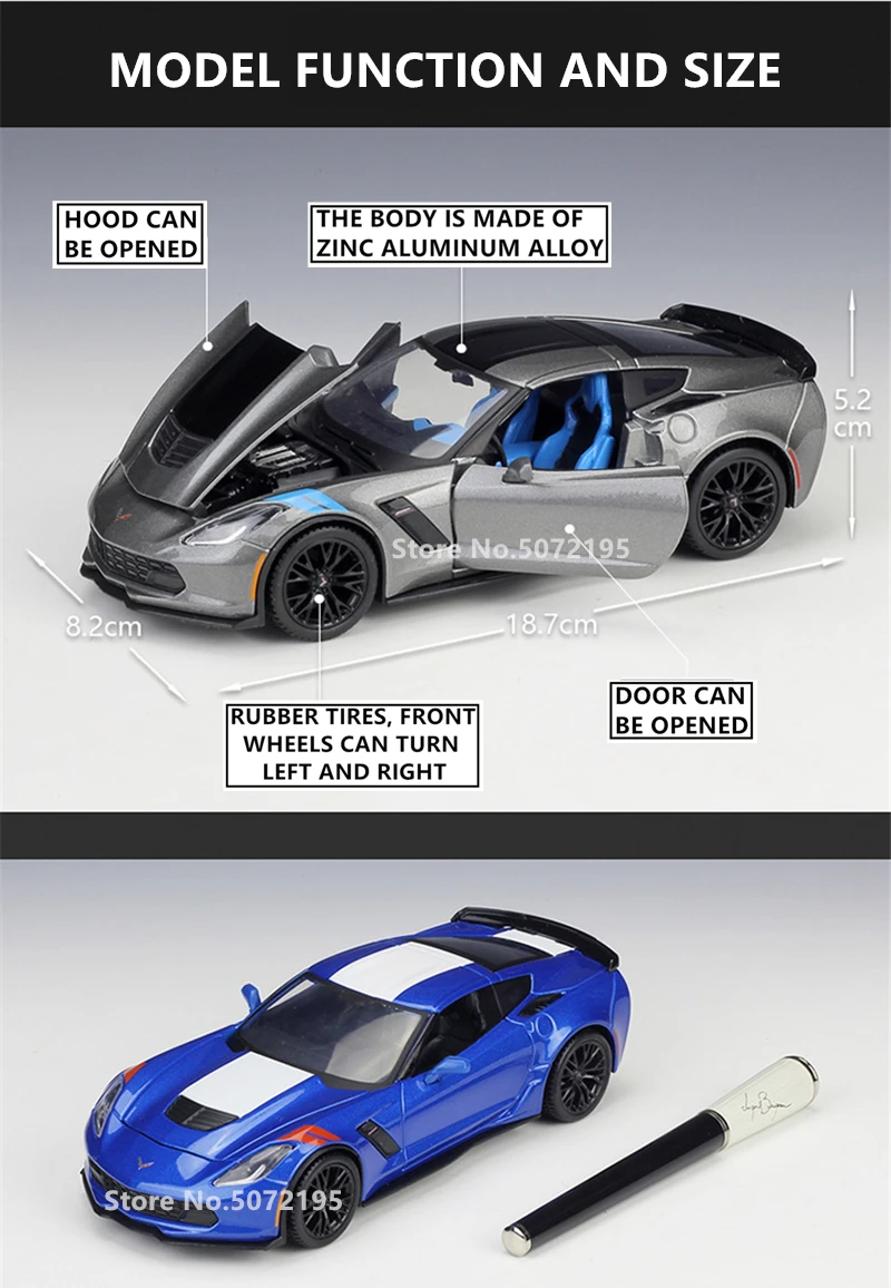 Введение продукта Название: 2017 Corvette Grand Sport Бренд: Maisto Размер: около 18,7*8,2*5,2 см Масштаб: 1/24 Материал: основной корпус-цинковый сплав, другие-АБС и Резина Наши продукты гарантированно являются аутентичными. Оригинальная Заводская оригинальная коробка. Официальное разрешениеЭтот продукт является коллекционной игрушкой, за исключением электрической. Шины могут быть перемещены, и рулевое колесо двери может быть перемещено.