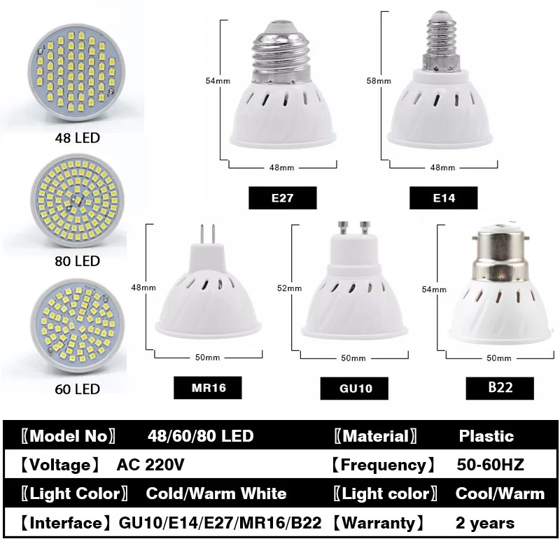 Напряжение: AC/110V220V Гнездо: MR16/GU10/E27/E14/B22 Светодиодный Quantitiy: 48 шт/60 шт/80 шт. Цветовая температура: холодный белый 6000-6500K/теплый белый 2800-3200K Угол луча: 360 градусов Срок службы:>50000 часов Ультратонкое естественное освещение CRI>85Ra