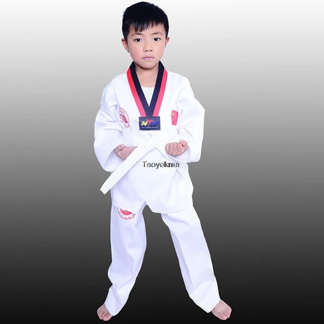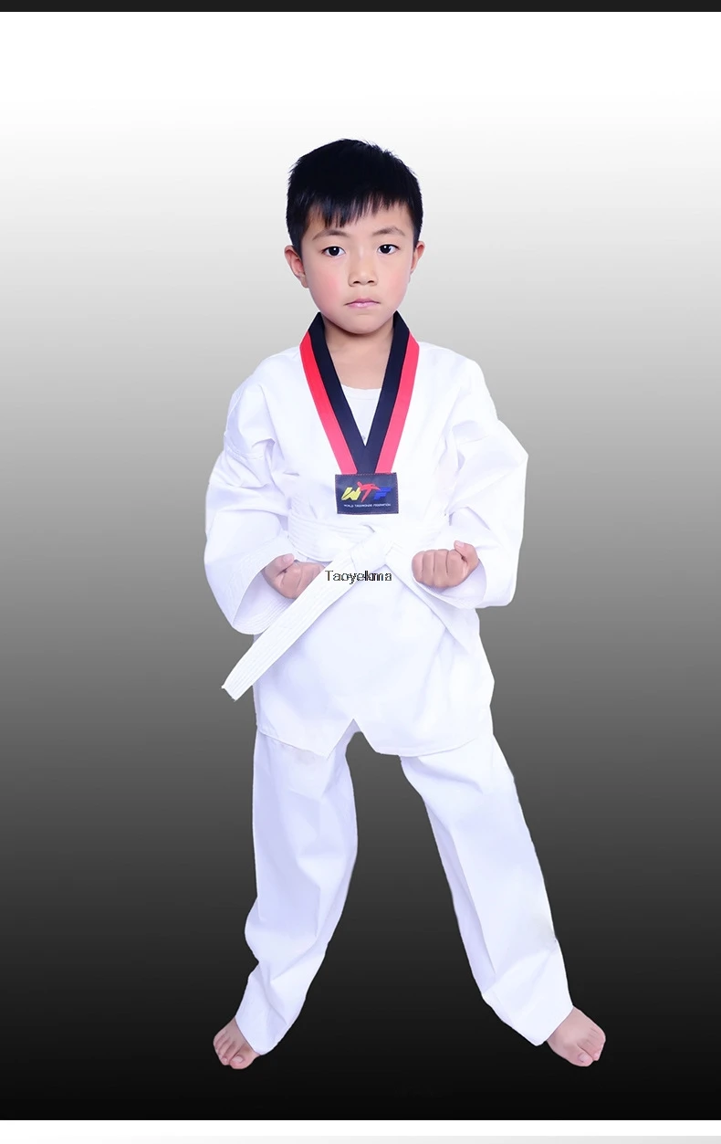 Традиционная белая форма для тхэквондо, Детский костюм для взрослых, костюм для тхэквондо, униформа для добка WTF, одежда для занятий спортом с длинным рукавом
