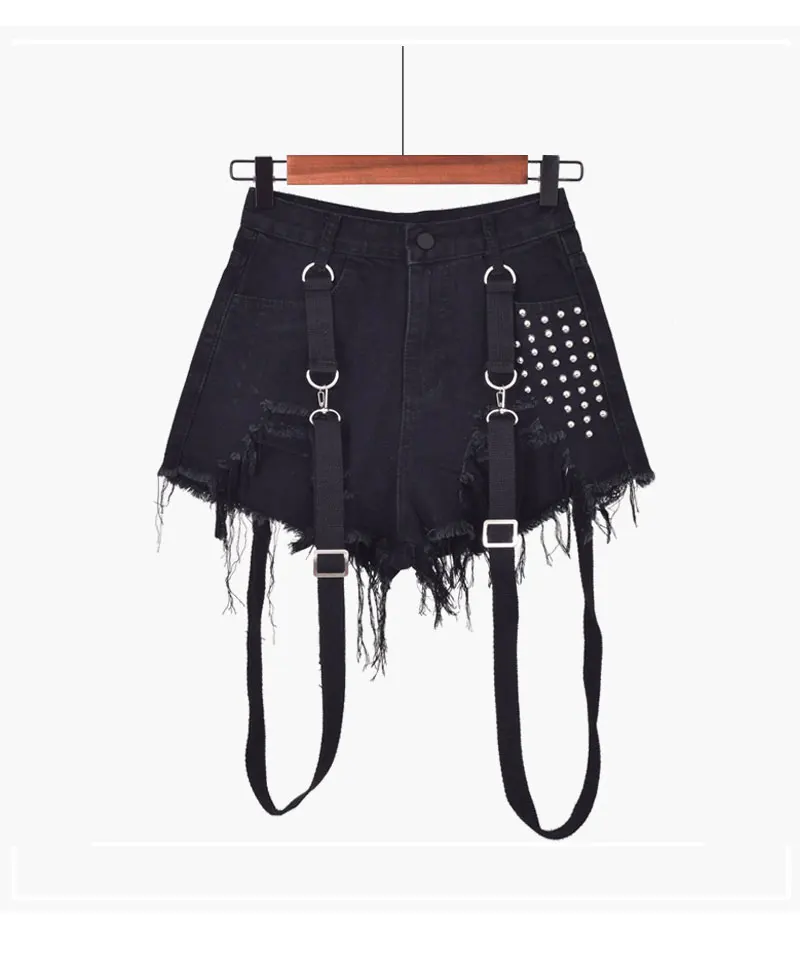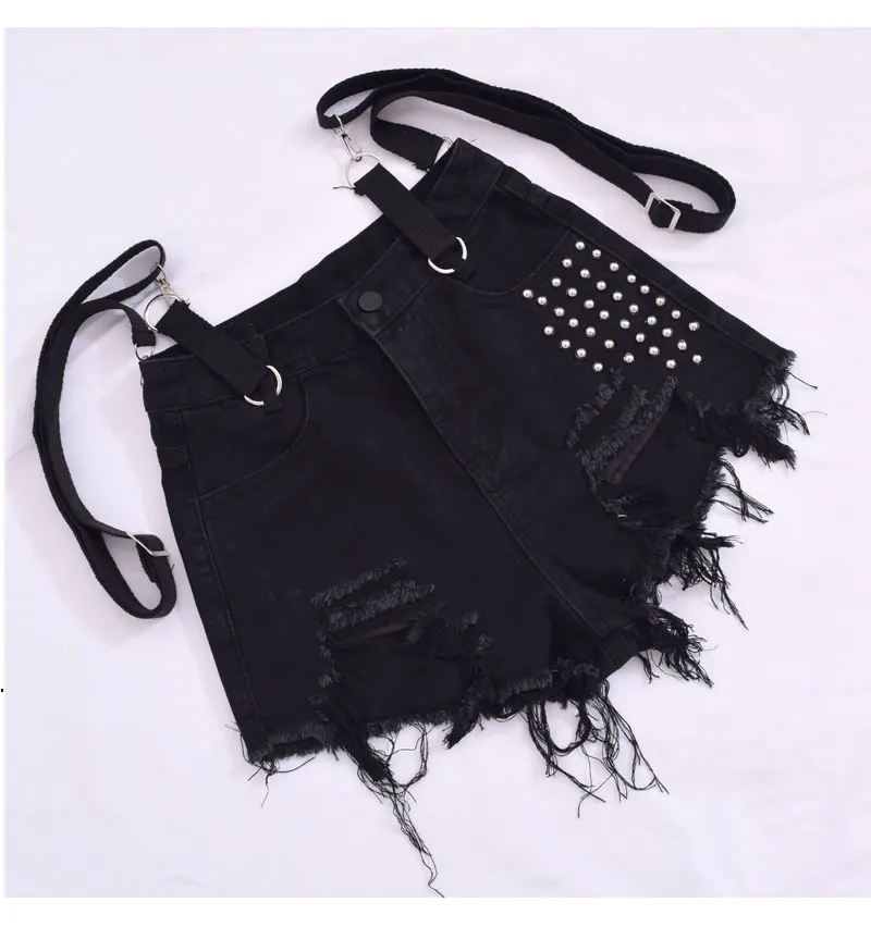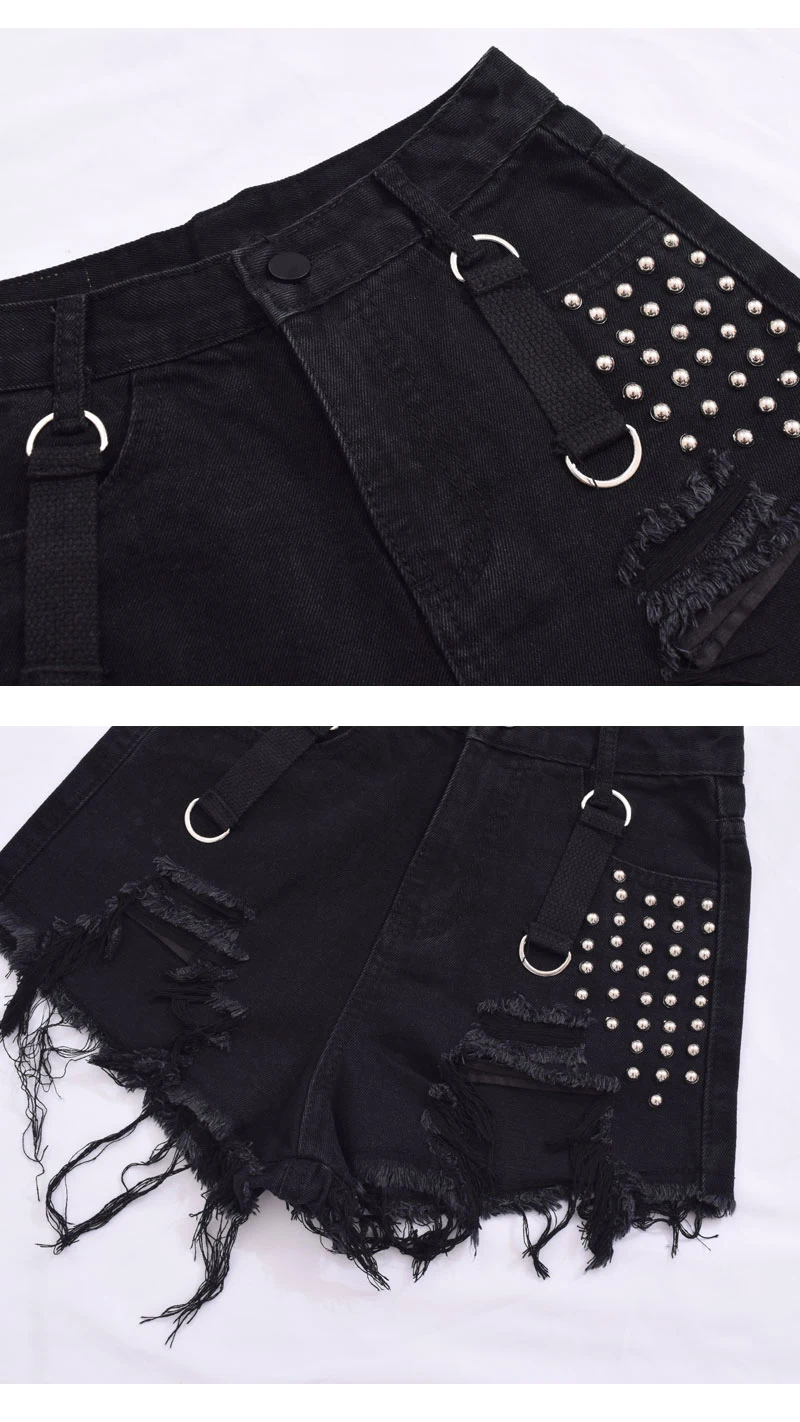 Женские джинсовые шорты черные мини-шорты из денима в стиле панк с дырками