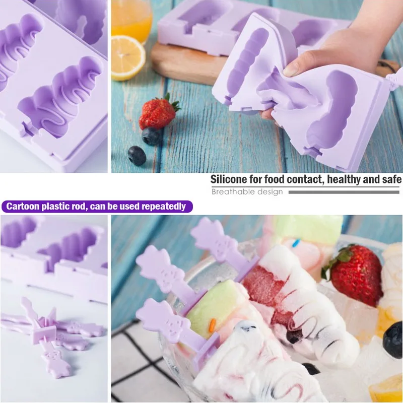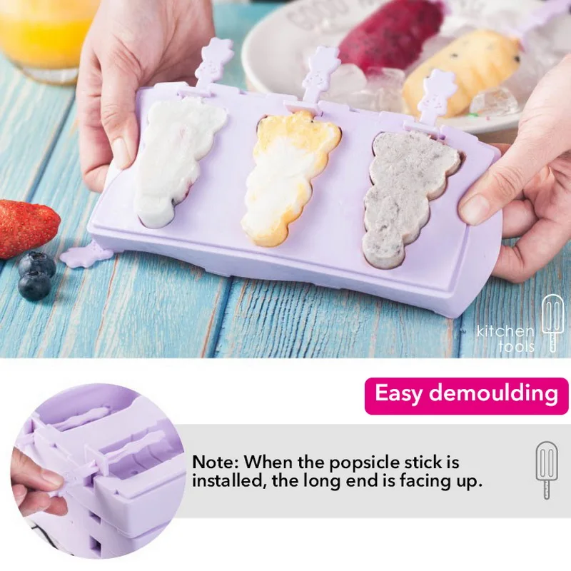 <Многоразовые: формы для мороженого поставляются с 3-полостной формой для Фруктового мороженого и 50 шт. палочек для Фруктового мороженого, используется для многократного, крепкого и гибкого, он не треснет и не выцветает.