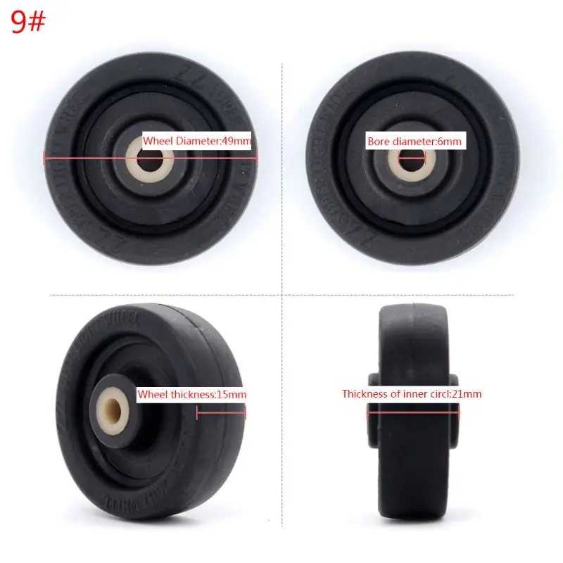 9: диаметр колес: приложение. 49 мм; Толщина колес: приложение. 15 мм