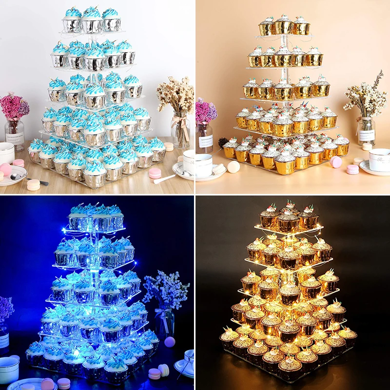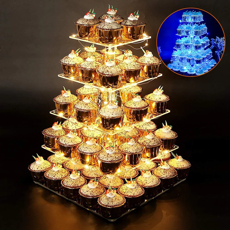 * 5-Слои Квадратный светодиодный светильник Акриловая подставка для кекса торт Дисплей башня Держатель вечерние Декор