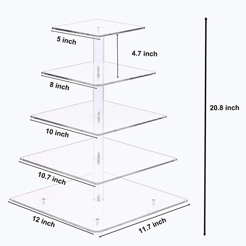 * Прочность подшипника: 4 мм акриловая пластина, толщина не 3 мм или 2 мм, может вместить около 12 фунтов кексов, десертов, пирожных или продуктов питания