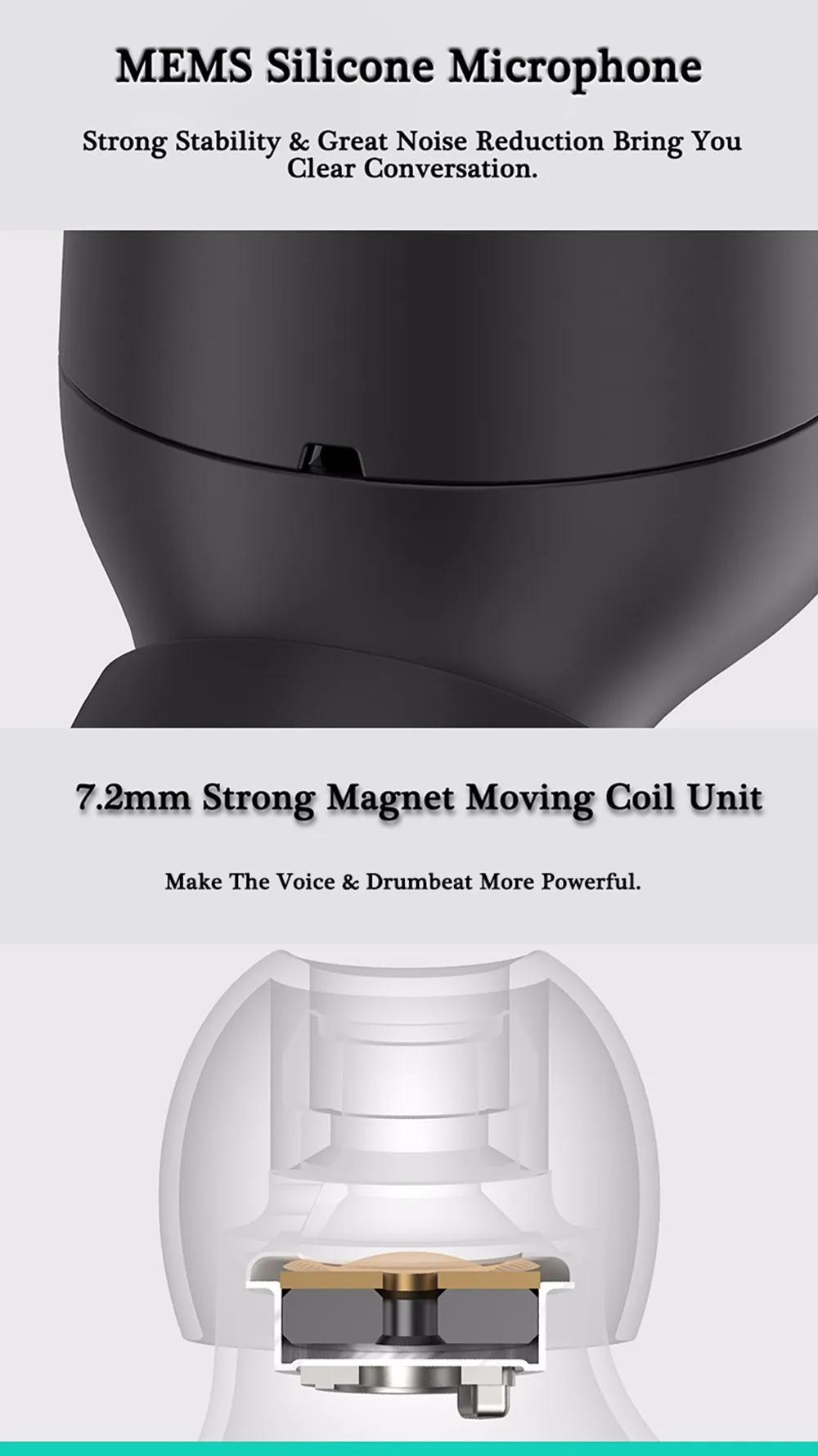 -7,2 мм мощный магнитный движущаяся катушка, делает голос и барабанный ритм более мощными