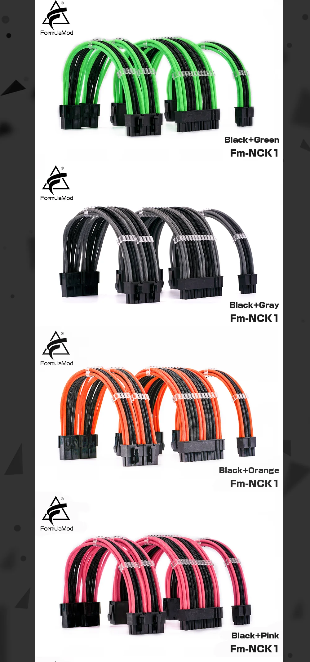 Модель: Fm-NCK1 Название: Комплект удлинительного кабеля питания нового типа [2x PCI-E 8Pin + 1x ATX 24Pin + 1x CPU 8Pin] Тип интерфейса: мужской [5557] Женский [5559] Сердечник кабеля: 18 AWG Диаметр кабеля: 3 мм Дополнительная длина: 200/300/400/500/600/700/800/900/1000 мм Дополнительный цвет: черный/синий/зеленый/серый/оранжевый/розовый/фиолетовый/красный/небесно-голубой/серебристый/белый/желтый
