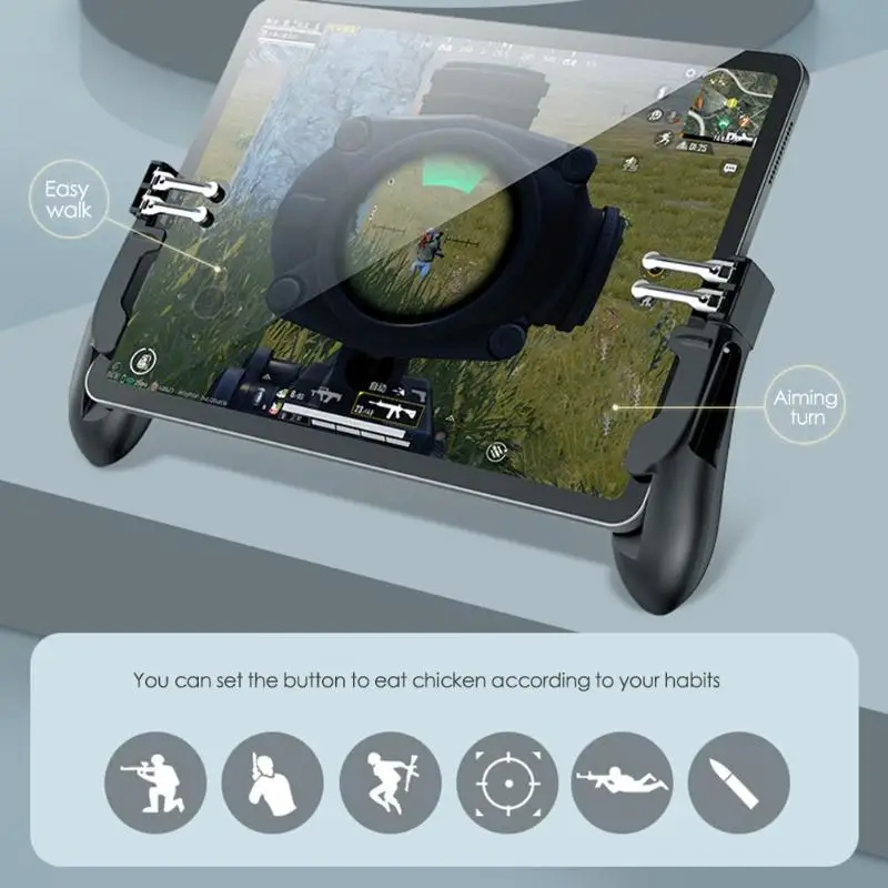 ![]() Особенности: 1. Это ощущение срабатывания, не блокирует экран, не блокирует кнопки. Универсальный для планшета. 2. Физическое нажатие, быстрая съемка, чувствительный без задержки. 3. Рычаг управления может быть повернут на 90 градусов, не блокируя экран. 4. 4 пользовательских кнопки, нажмите для съемки, нажмите на левый зонд, нажмите на правый зонд, нажмите, чтобы лежать, нажмите, чтобы открыть зеркало, нажмите, чтобы перейти, чтобы установить по желанию. 5. Может использоваться в качестве кронштейна для планшета. Параметры: Мобильная модель для iPad Android / IOS смартфона планшета Особенности: игровой контроллер для PUBG Материал: АБС + цинковый сплав Цвет: черный, красный (по желанию) Применение: для iPad Android / IOS smart tablet Размер посылка: 155*130*30 мм/6,1*5,11*1,18'' Вес: 160 г Примечание: Возможны отклонения в 1-3 мм вследствие измерений вручную. Из-за различных дисплеев и различного светильник, изображение может не показать фактический цвет товара. Спасибо за понимание.