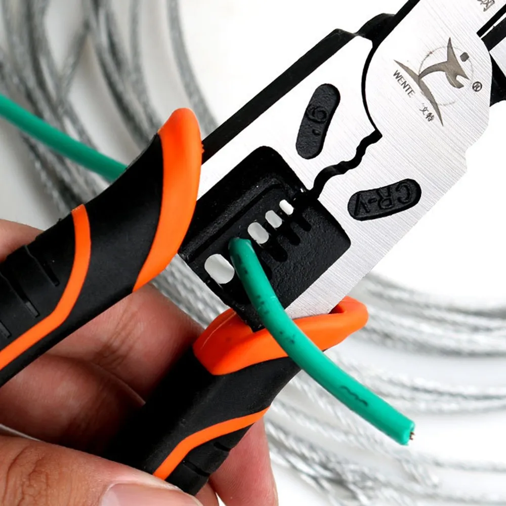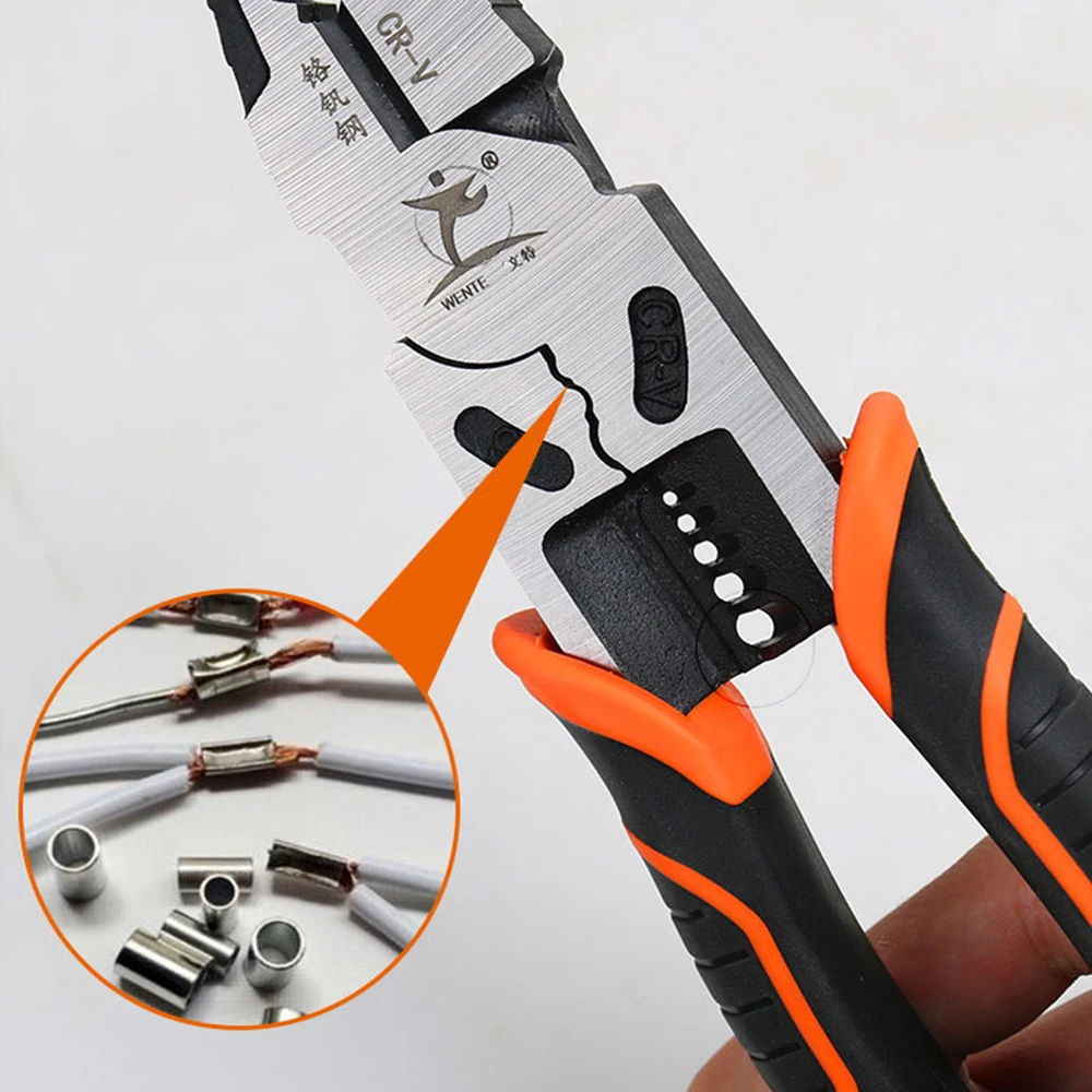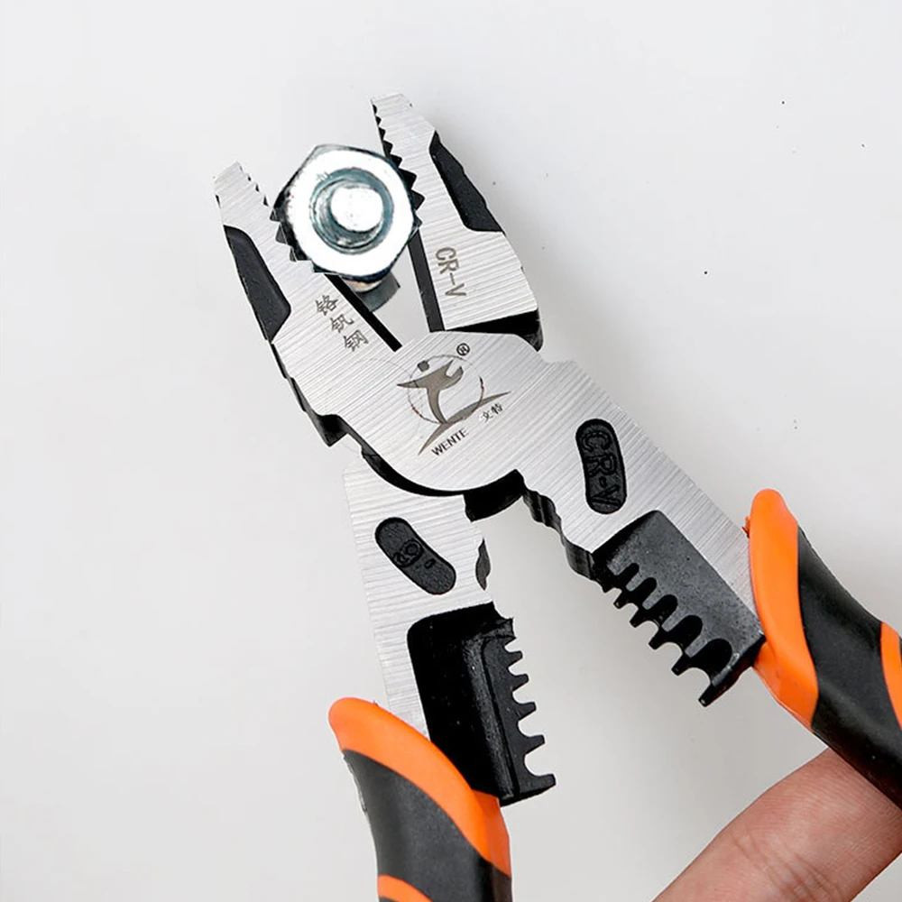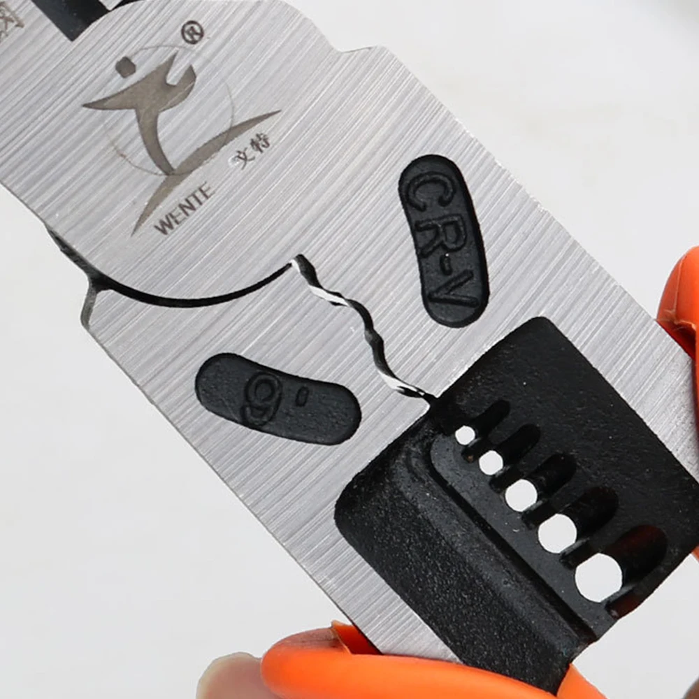 Особенности: Сверхпрочная кованая сталь стоит против прочной рабочей среды. Многофункциональность: зачистки, голова поставщика, проволока, болтовые ножницы. Удобная ручка с эргономичным дизайном и оптимальной передачей силы. Это ручной инструмент для электриков, ремонтных работников и обычных семей. Спецификация: Материал: хром-ванадиевая легированная сталь + ручка из ПВХ Цвет: оранжевый и черный Общая длина: 223 мм Вес: 428 г Посылка включает в себя: 1 x многофункциональный инструмент для зачистки проводов