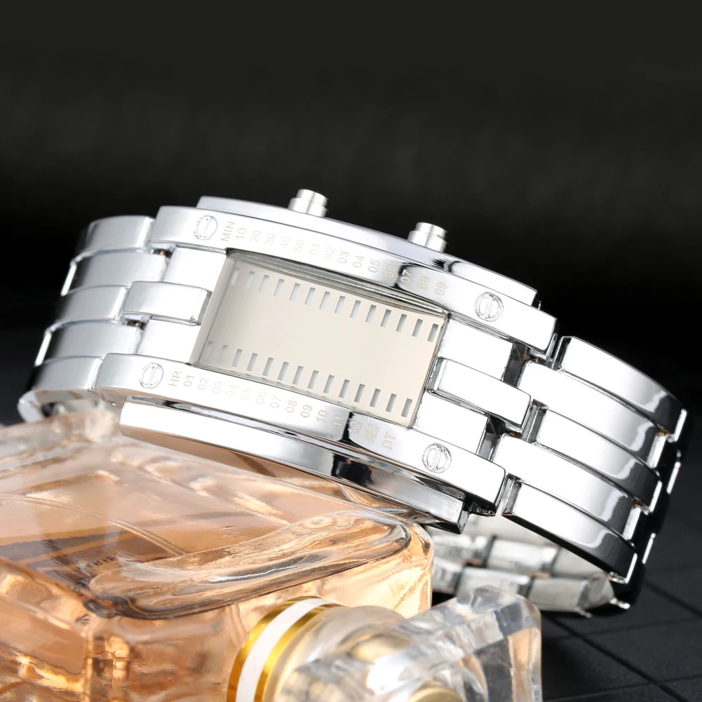 Прекрасный внешний вид: в этих часах Используется уникальная конструкция бинарные светодиодный двойной-аппаратура вдоль рампы, переворот светодиодный со стильным Форма раковины, что делает эти часы выглядят очень круто и очаровательной.