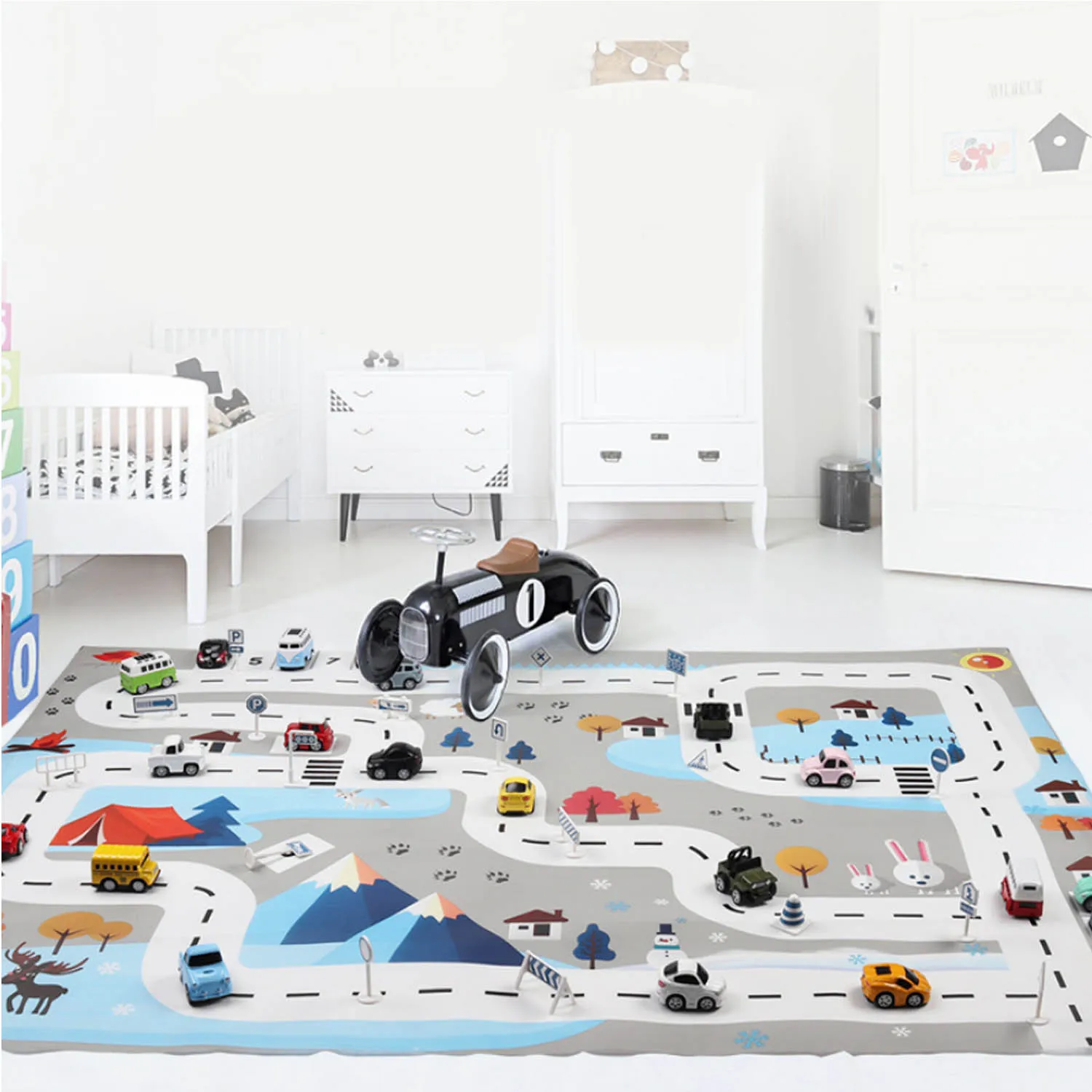 Каждый коврик размером 39,37 дюйма на 51,18 дюйма!Он может вместить 2 или более детей, позволяя им делиться игрушками и играть вместе, чтобы они могли веселиться!
