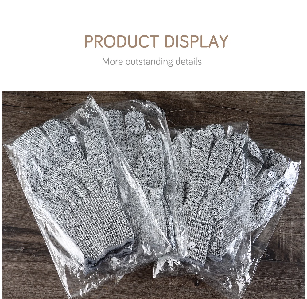 Посылка включает в себя 1 пара × перчатки Описание: 1. Перчатки, устойчивые к порезу, уровень защиты 5 для пищевых продуктов, защитные перчатки для кухни. 2. Уменьшить вред от острых материалов, таких как резка мяса, резьба по дереву и так далее. 3. Вы надежный кухонный помощник, защищающий руки от травм, а также режущие и нарезные перчатки с защитой от порезов. 4. Работайте быстрее и безопаснее, используя перчатки. 5. Улучшенная защита от острых лезвий, обеспечивающая превосходный комфорт. 6. Материалы: 13 калибра, нейлон, стекловолокно, HPPE. 7. Посылка: 1 пара/лот. Преимущества 1). Сертификация: сертификаты CE для EN388 4543, международные проверочные агентства Intertek и CTC. 2). Преимущества цены: Прямая цена от производителя, без разницы в цене и процессе, хорошее качество и низкая цена. 3). Прочность производства: Наш завод прошли инспекцию Sedex и BSCI, процесс производства строгий, и качество гарантируется.