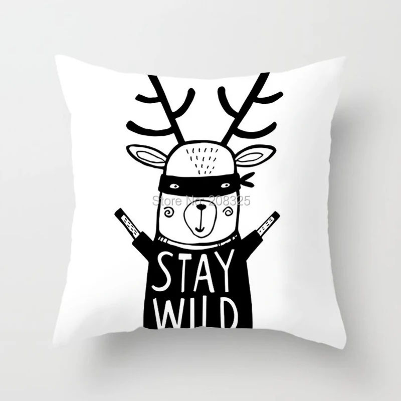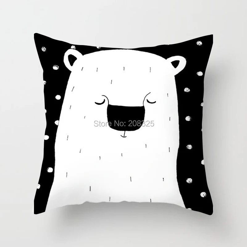 ZENGIA маленький Медвежонок пещера черный белый наволочка Мультяшные животные Пледы Подушки скандинавский домашний декор геометрические горы Kussenhoes