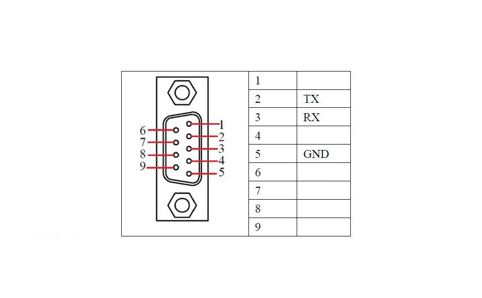 Этот модуль имеет в общей сложности 1 интерфейс RS232/485 (зеленый вывод клеммы 5. 00 мм), из которых RS232 использует гнездо DB9 (тип отверстия), определение сигнала показано на рисунке Его можно подключить к стандартному последовательному кабелю «папа». Разъем питания В этом модуле используется источник питания с широким диапазоном напряжения DC5-36V, а мощность модуля составляет менее 0,2 Вт.