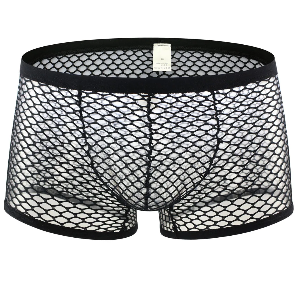 Мужские ажурные трусы с низкой талией, сексуальное Сетчатое Прозрачное нижнее белье, шорты