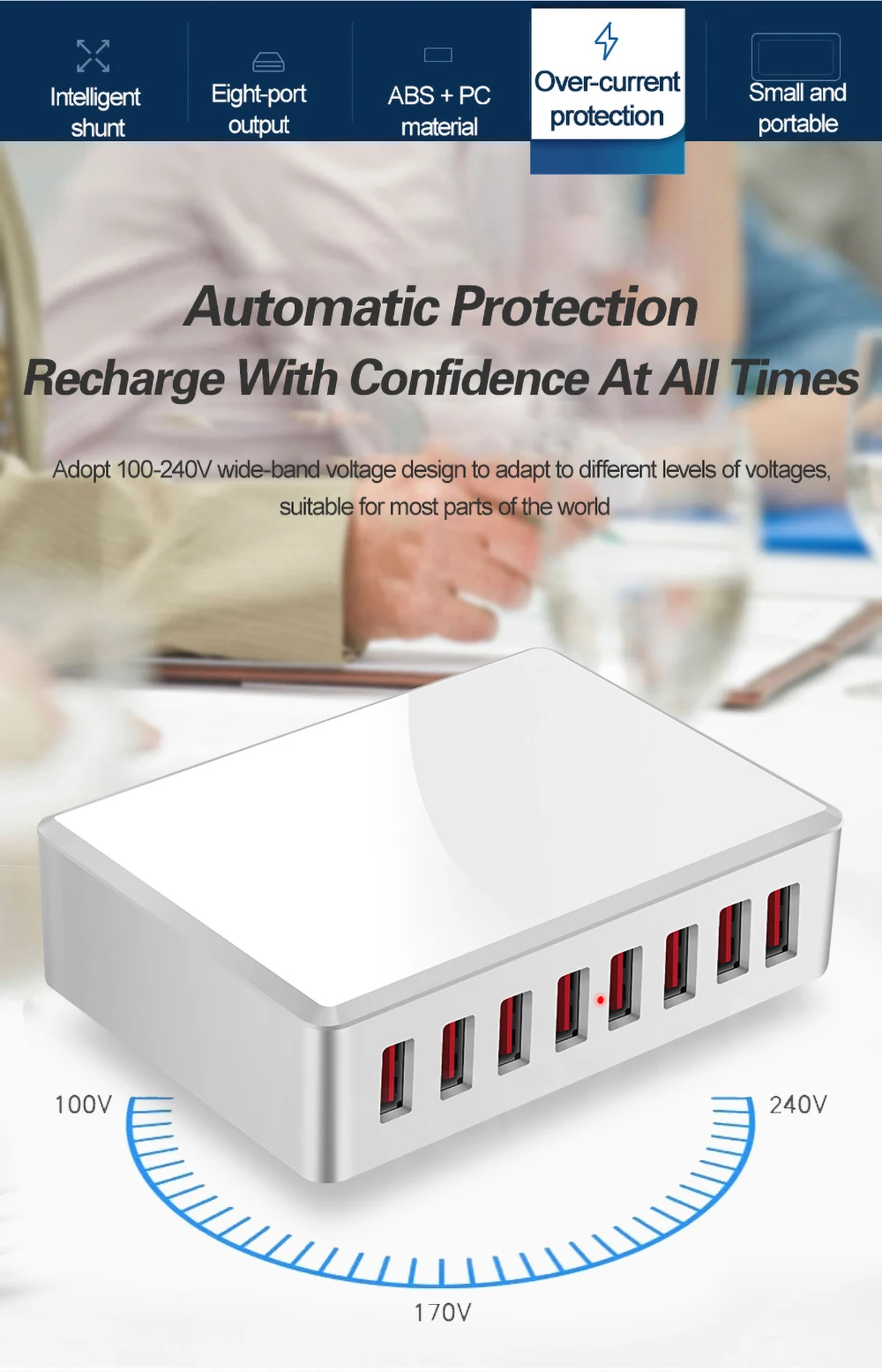 3. Заряжайте 8 устройств одновременно.