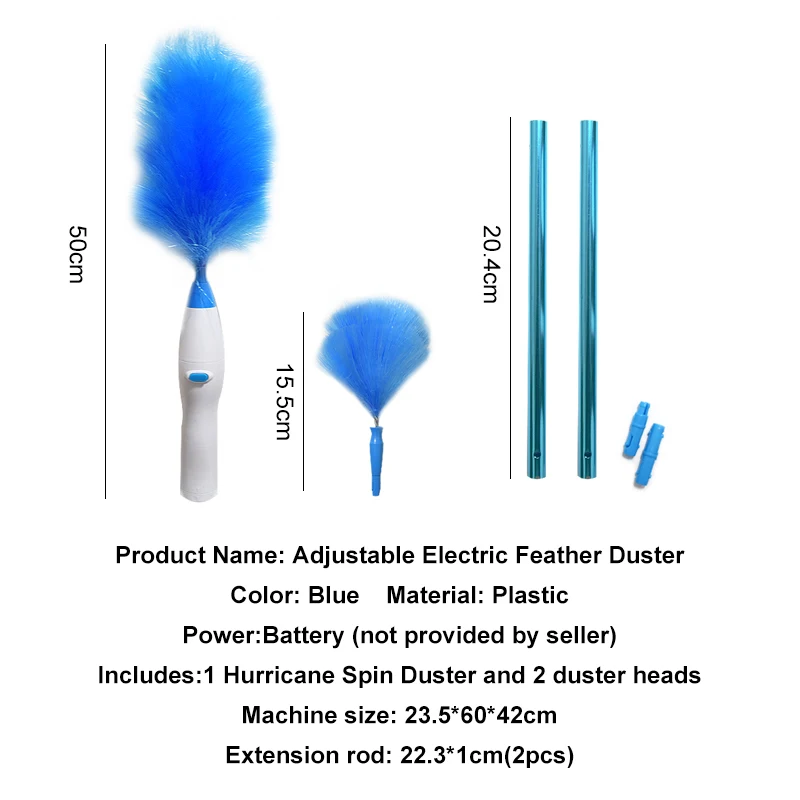 Цвет: синий Питание: аккумулятор (не предоставляется продавцом) Материал: пластик В комплекте: 1 крутящаяся тряпка Hurricane и 2 головки Duster Размер машинки: 23,5*60*42 см Удлинитель: 22,3*1 см (2шт)