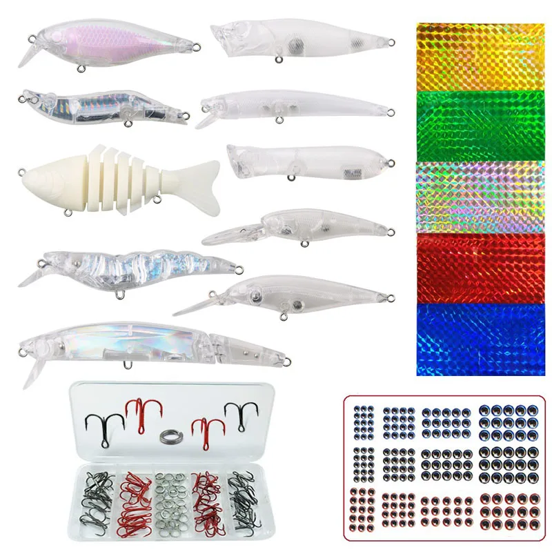 Количество: 268 шт./компл. Жесткая наживка: 10 шт. 3D наклейка: 5 шт. Тройные Крючки: 40 шт. Разделенные кольца: 30 шт. 3D глаза для рыбалки: 183 шт. Особенности: Материал: Высокопрочный материал, надежность и долговечность Звук: Встроенные стальные шарики внутри, более привлекательные для рыб. Реалистичная имитация: яркое плавание в воде, облегчающее рыбалку. Сделай Сам, ваша приманка для рыбалки, наслаждайтесь рыбалкой на открытом воздухе Примечание: Есть некоторые ошибки в измерениях, пожалуйста, не обращайте на это внимания. Спасибо