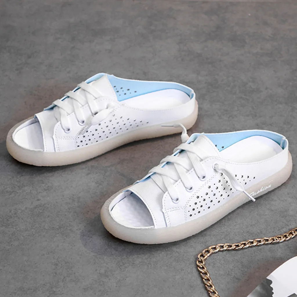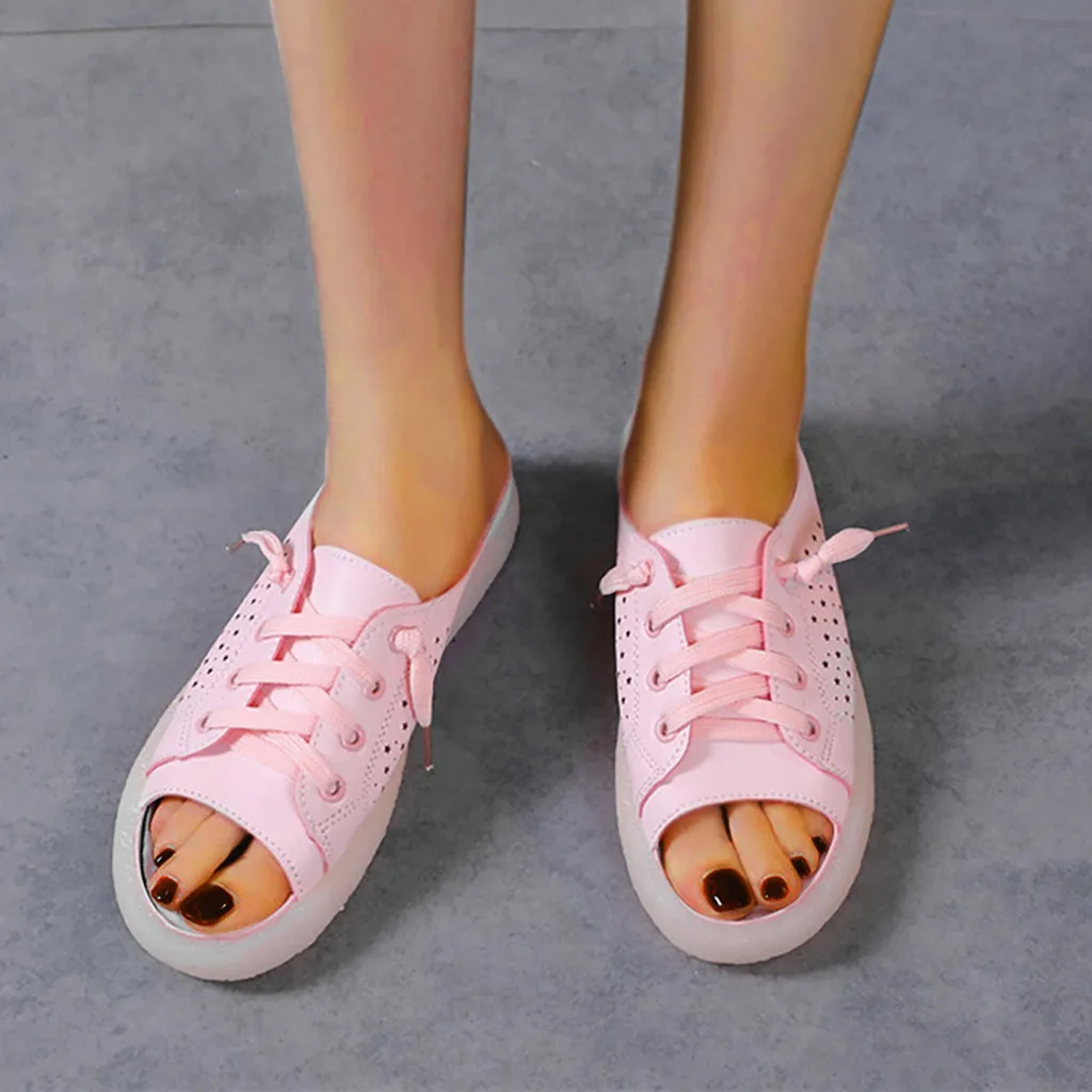 Модные летние пикантные босоножки; Однотонные повседневные шлепанцы на плоской подошве с круглым носком