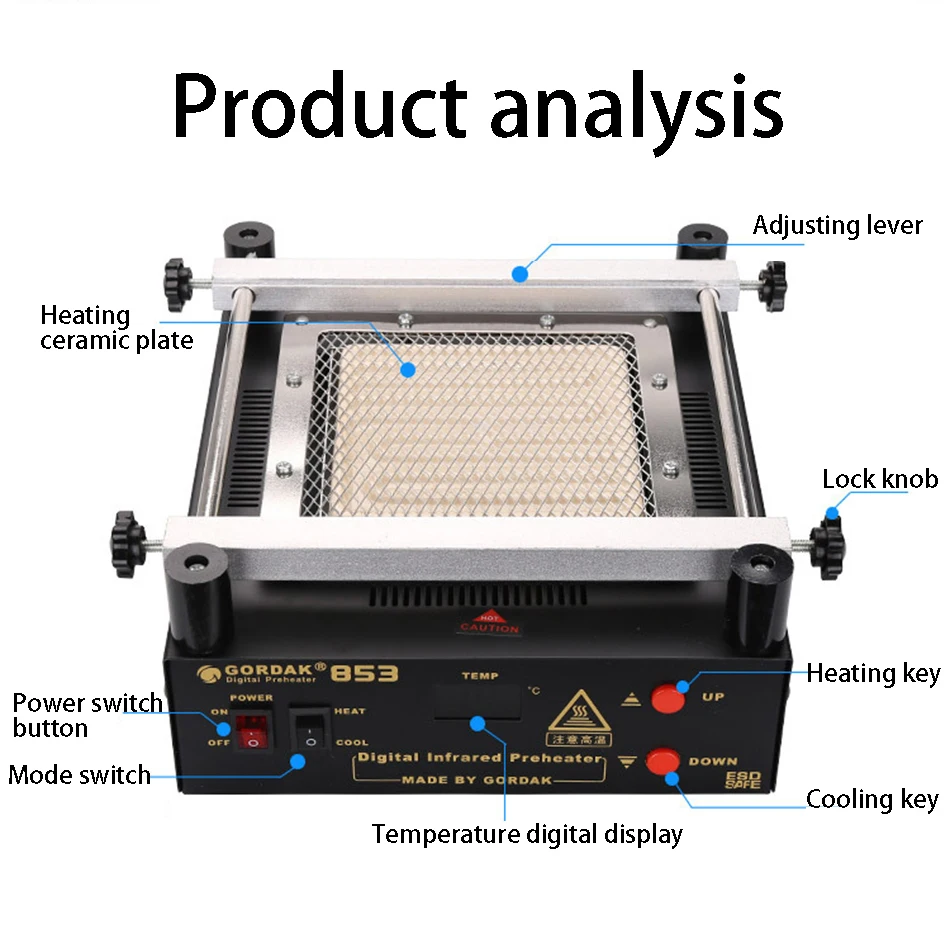 Область применения: для предварительного нагрева, нагрева, вспомогательный инструмент для припоя и удаления платы PCB.