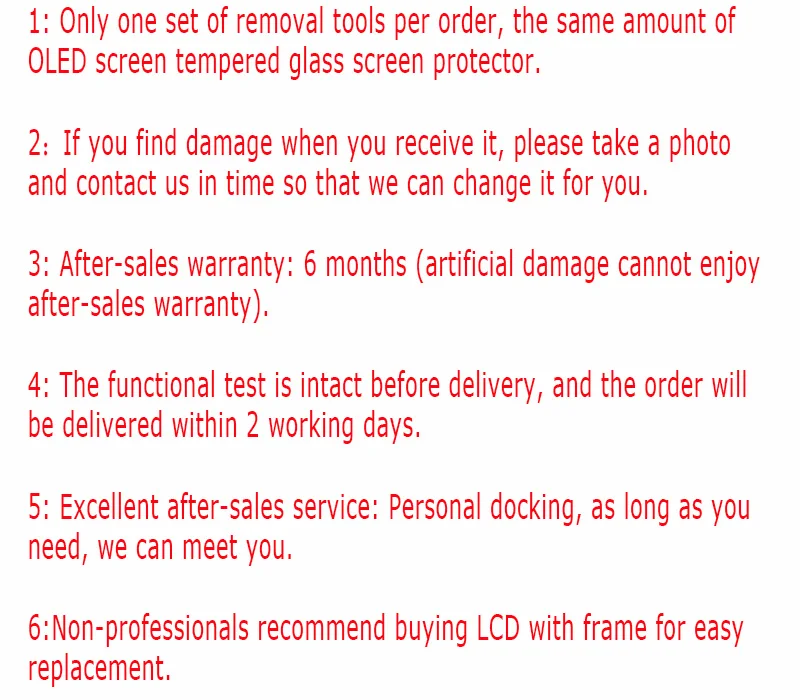 1: в каждом заказе предусмотрен только один набор инструментов для разборки, то же количество защитных пленок из закаленного стекла для ЖК-экрана.